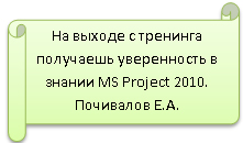 Некоторые компании подошли к этим вопросам серьезно, и заранее подготовились к осеннему сезону, вооружив свою команду отличным инструментом – MS Project 2010. В предпоследние выходные лета, 17-18 августа, состоялся курс «Планирование и контроль проектов в MS Project 2010», участие в котором приняли сотрудники некоторых энергостроительных компаний, а также других отраслей бизнеса.