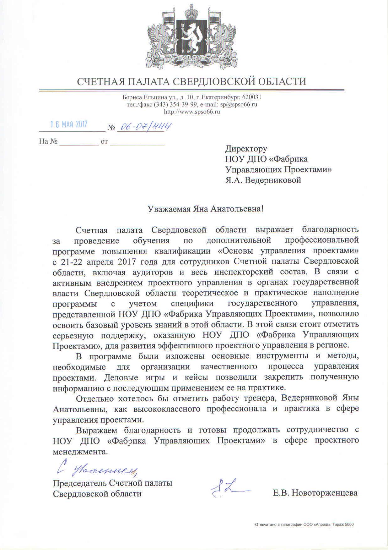Отзыв об услуге. Счётная палата Свердловской области